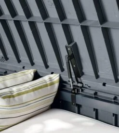 De Glenwood kunststof opbergbox van Keter is supersterk, ultrastijlvol, hij kan ook dienen als een bank voor twee volwassenen en heeft een opslagcapaciteit van bijna 400 liter. Het is uitgerust met een praktisch automatisch openingsmechanisme dat gemakkelijk openen mogelijk maakt, zelfs wanneer je je handen vol hebt. Het is gemaakt van een duurzame, weerbestendige kunststof met een chique uitstraling van houtwerk. Een opgeruimde tuin begint bij de aanschaf van een praktisch, goeduitziende oplossing, gebruik de Keter Glenwood als tuinkussenbox, kussenbox of algemen opbergbox voor je tuinaccessoires!