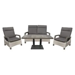Met deze prachtige MARSEILLE loungeset van Royal Seasons kun je eindeloos genieten in de tuin. Bij zowel de 2-zitsbank als de fauteuils kan je de rugleuning instellen naar de gewenste stand. Het is gemaakt van hoogwaardig wicker met een aluminium frame. Aluminium is licht in gewicht en bovendien erg sterk. Daarom wordt aluminium veel gebruikt in de productie van tuinmeubelen. De hoeklounge is inclusief de MARBELLA in hoogte verstelbare tafel. Kortom – een zeer luxe hoeklounge waarmee jij maximaal geniet van jouw tuin!